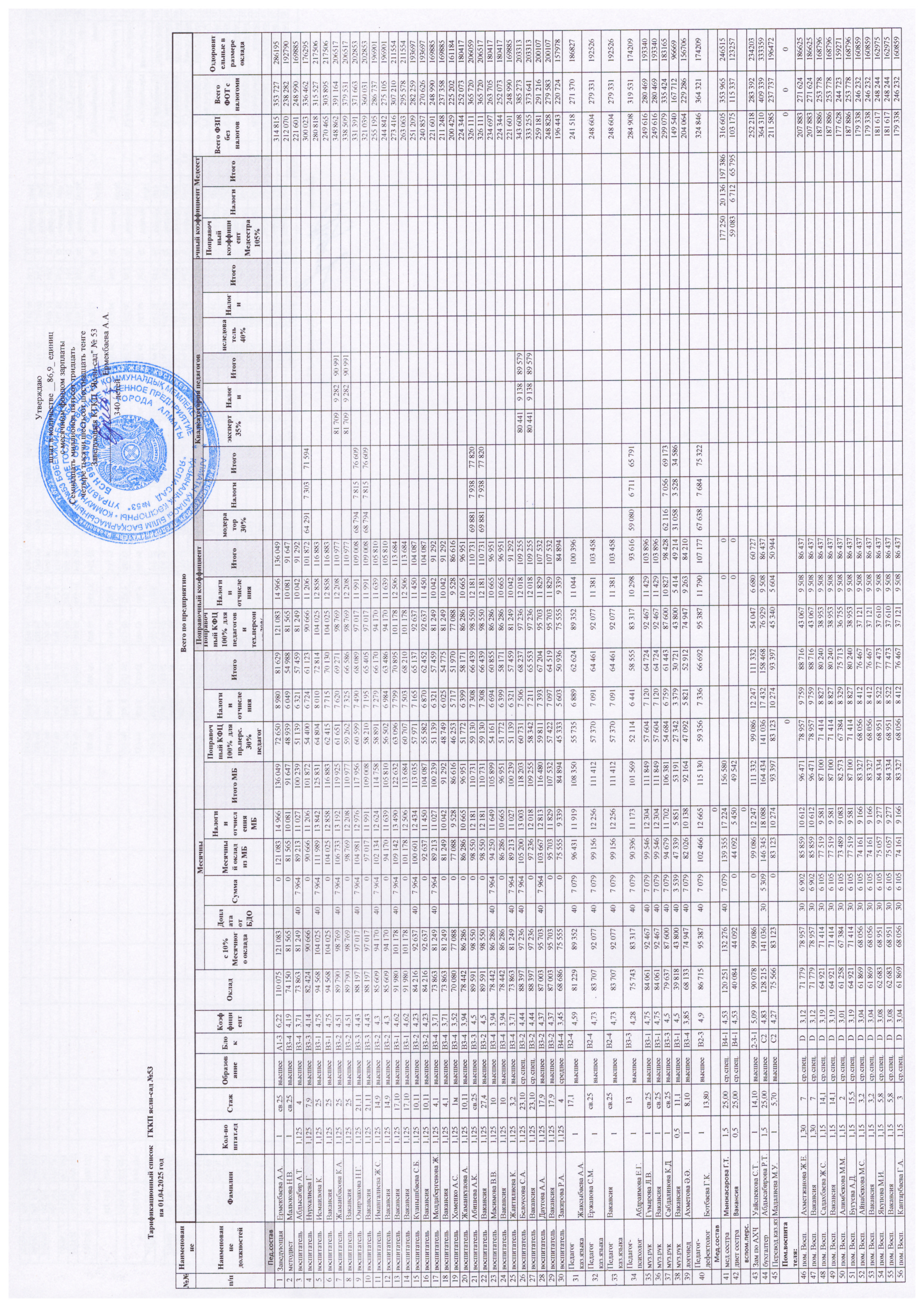 Тарификационный список на 2022 год