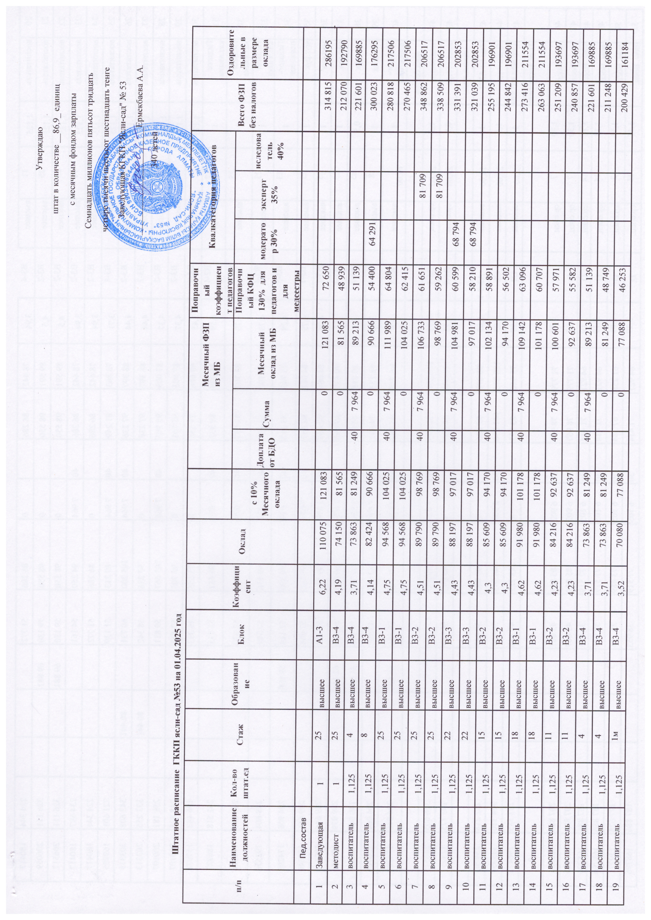 Штатное расписание на 2025 год